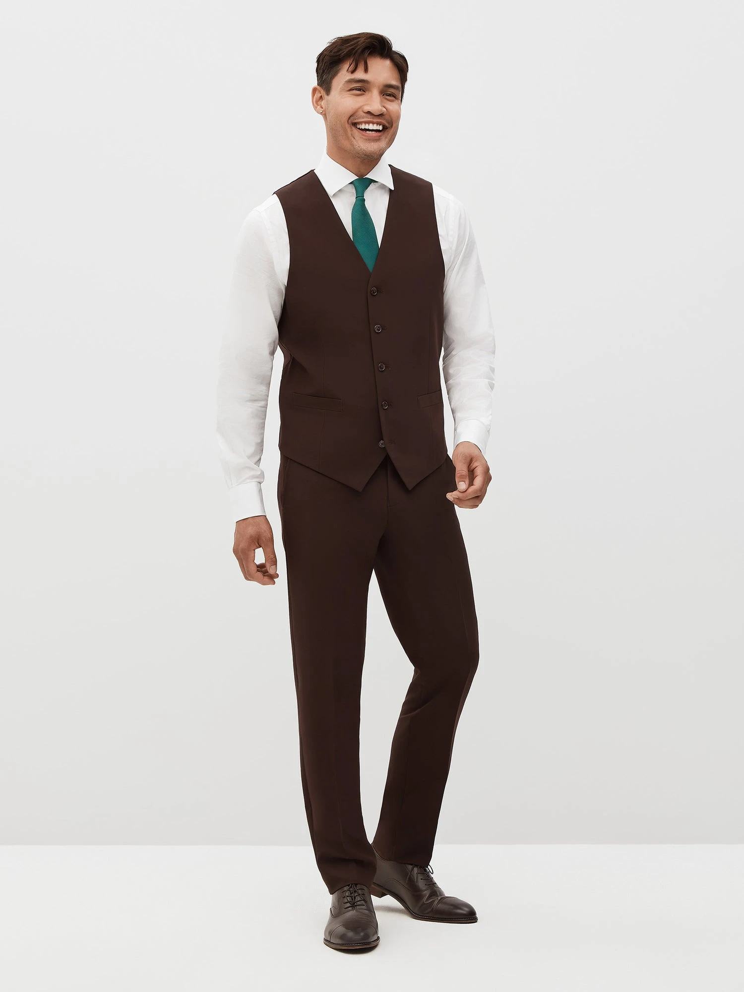 Finish your formal look with a sharp, tailored layer that adds instant refinement. This jet Brown suit vest is designed to bring structure and sophistication to any dress outfit, whether you’re suiting up for business, weddings, or evening events. The clean, minimal front and rich Brown tone make it an easy match with both classic suits and tuxedos.